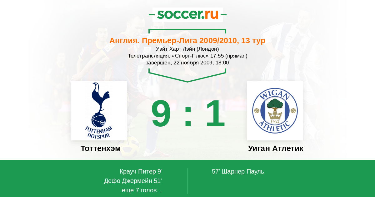 Протокол матча Тоттенхэм против Уиган Атлетик