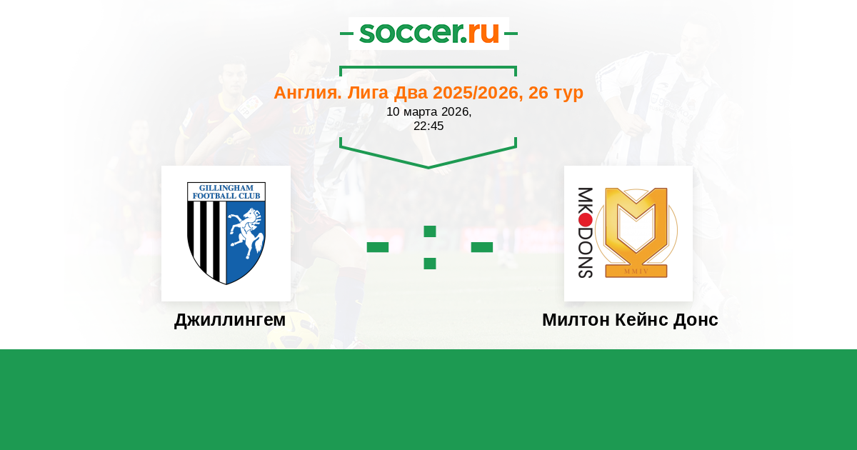 Англия. Вторая Футбольная Лига 12.04.2025 Джиллингем Логотип футбольный клуб Джиллингем 1:0 Логотип футбольный клуб Милтон Кейнс Донс Милтон Кейнс Донс