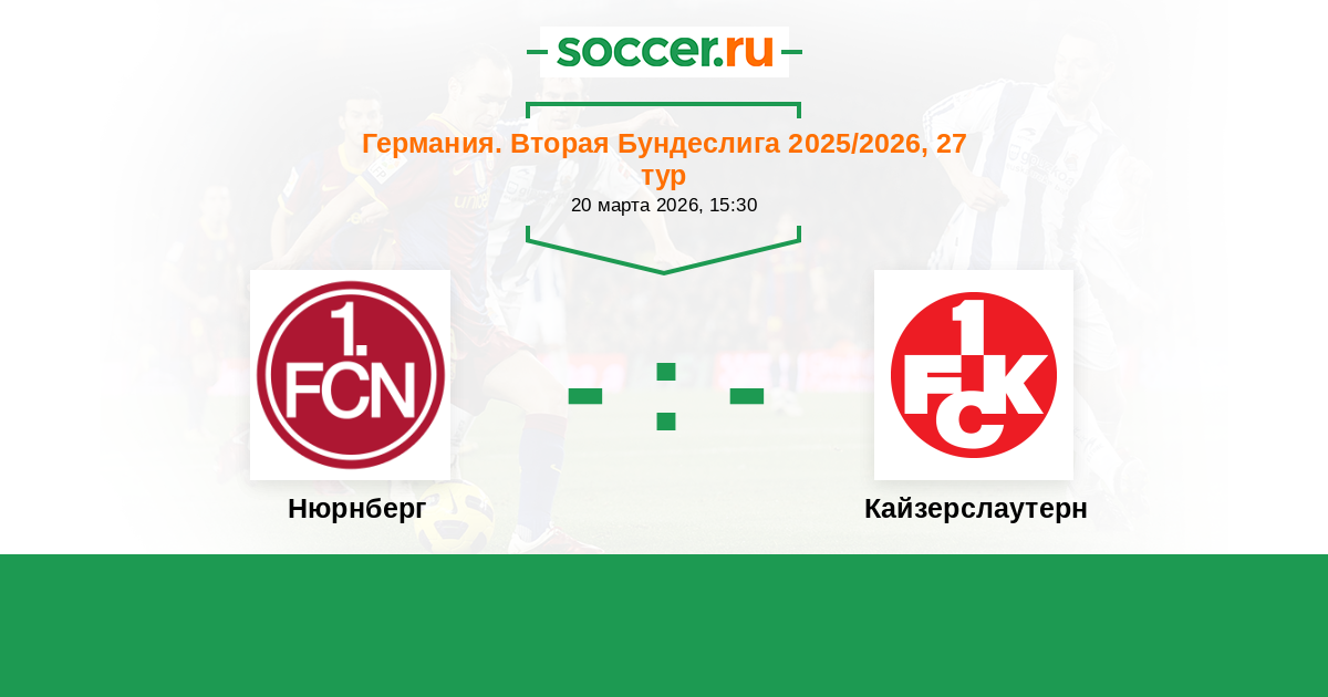 Германия. Бундеслига 2 26.10.2025 Кайзерслаутерн Логотип футбольный клуб Кайзерслаутерн 1:1 Логотип футбольный клуб Нюрнберг Нюрнберг