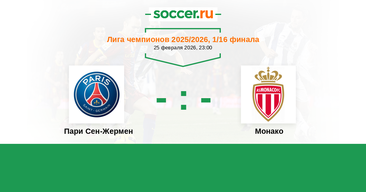 Франция. Лига 1 29.11.2025 Монако Логотип футбольный клуб Монако 1:0 Логотип футбольный клуб Пари Сен-Жермен (Париж) Пари Сен-Жермен