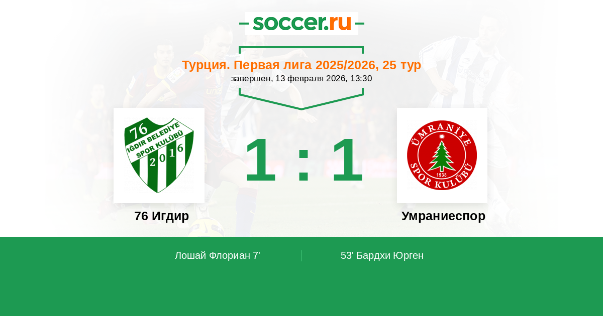 Протокол матча 76 Игдир против Умраниеспор