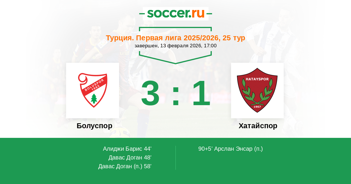 Протокол матча Болуспор против Хатайспор