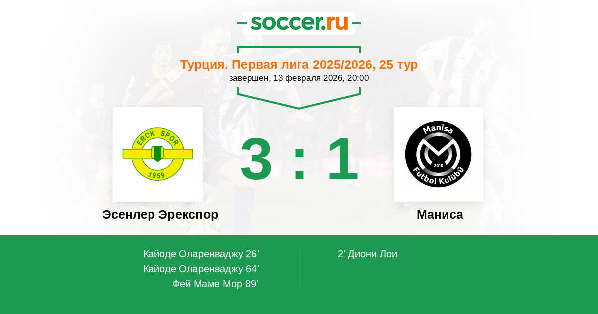 26' (1:1) Кайоде Оларенваджу (10)