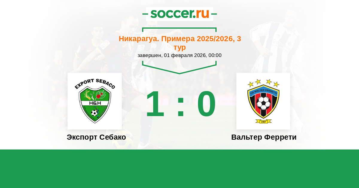 Никарагуа. Примера 19.01.2025 Вальтер Феррети Логотип футбольный клуб Вальтер Феррети (Манагуа) 3:0 Логотип футбольный клуб Экспорт Себако Экспорт Себако