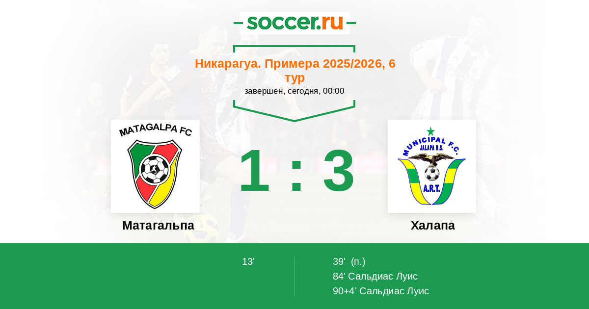 Протокол матча Матагальпа против Халапа