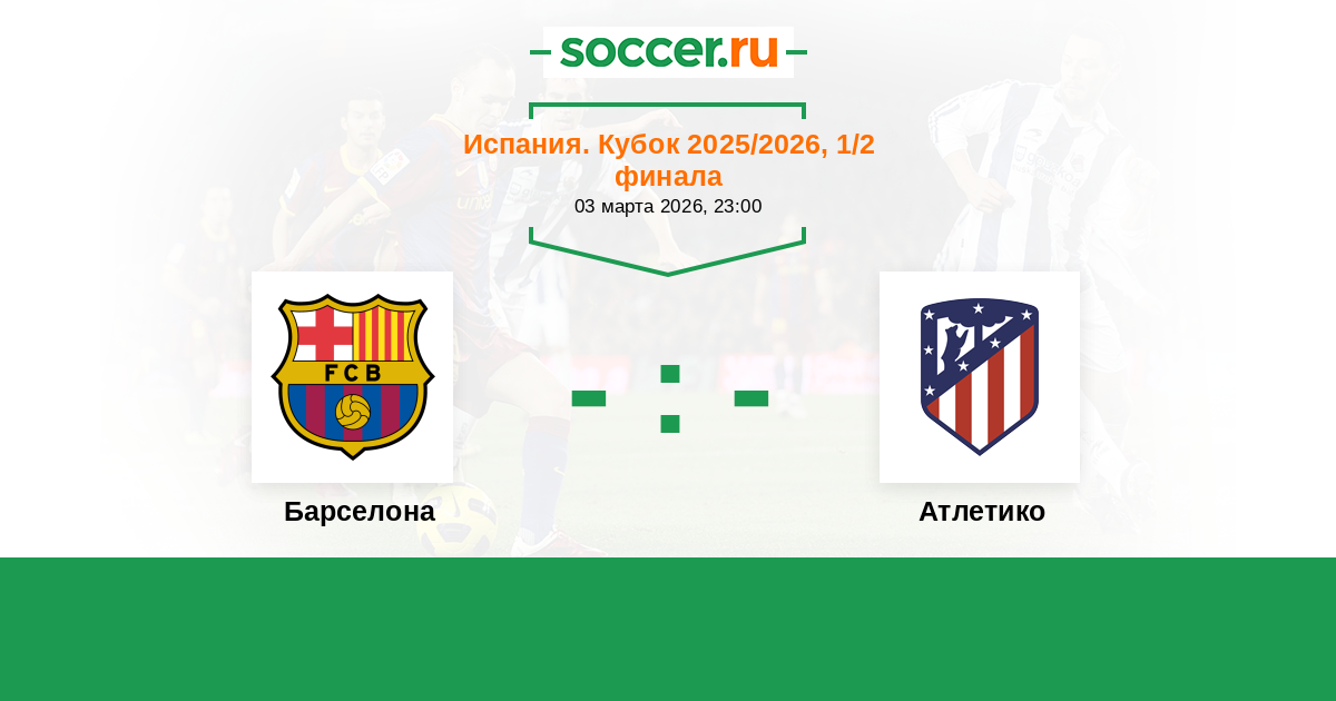 Испания. Кубок 12.02.2026 Атлетико Логотип футбольный клуб Атлетико (Мадрид) 4:0 Логотип футбольный клуб Барселона Барселона