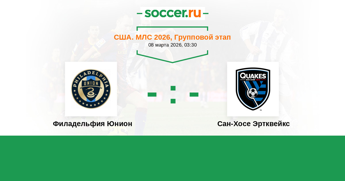 История матча Филадельфия Юнион против Сан-Хосе Эртквейкс