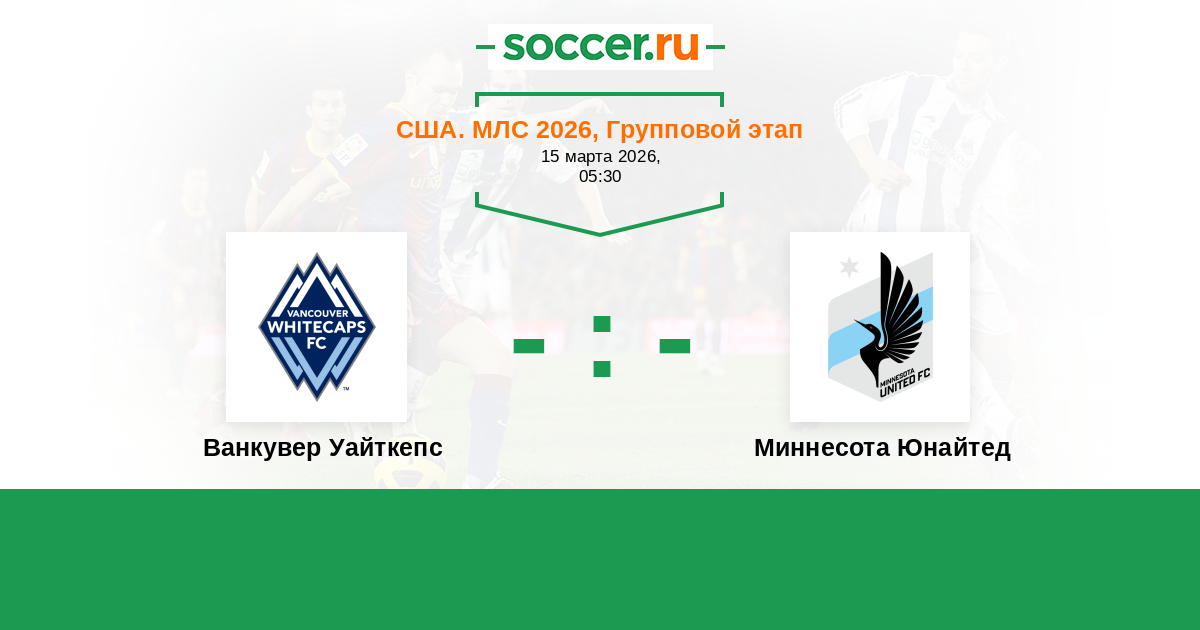 США. МЛС 26.03.2023 Миннесота Юнайтед Логотип футбольный клуб Миннесота Юнайтед 1:1 Логотип футбольный клуб Ванкувер Уайткепс Ванкувер Уайткепс