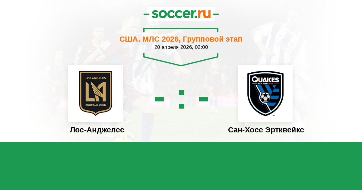 США. МЛС 13.04.2025 Лос-Анджелес Логотип футбольный клуб Лос-Анджелес 2:1 Логотип футбольный клуб Сан-Хосе Эртквейкс Сан-Хосе Эртквейкс