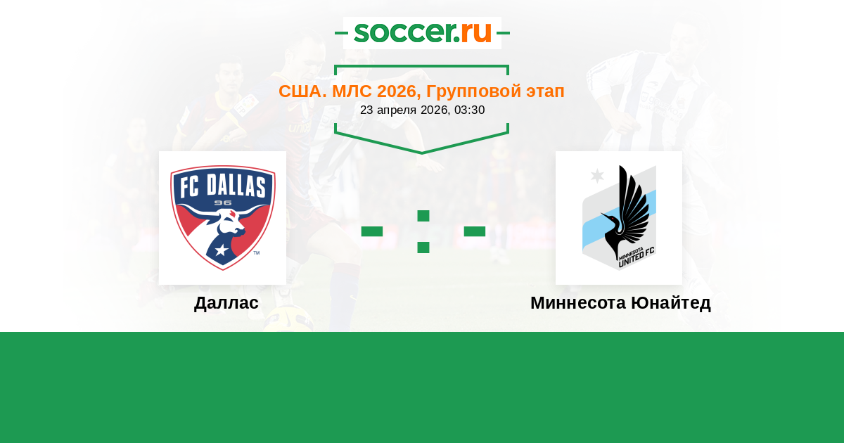 США. МЛС 20.04.2025 Миннесота Юнайтед Логотип футбольный клуб Миннесота Юнайтед 0:0 Логотип футбольный клуб Даллас Даллас