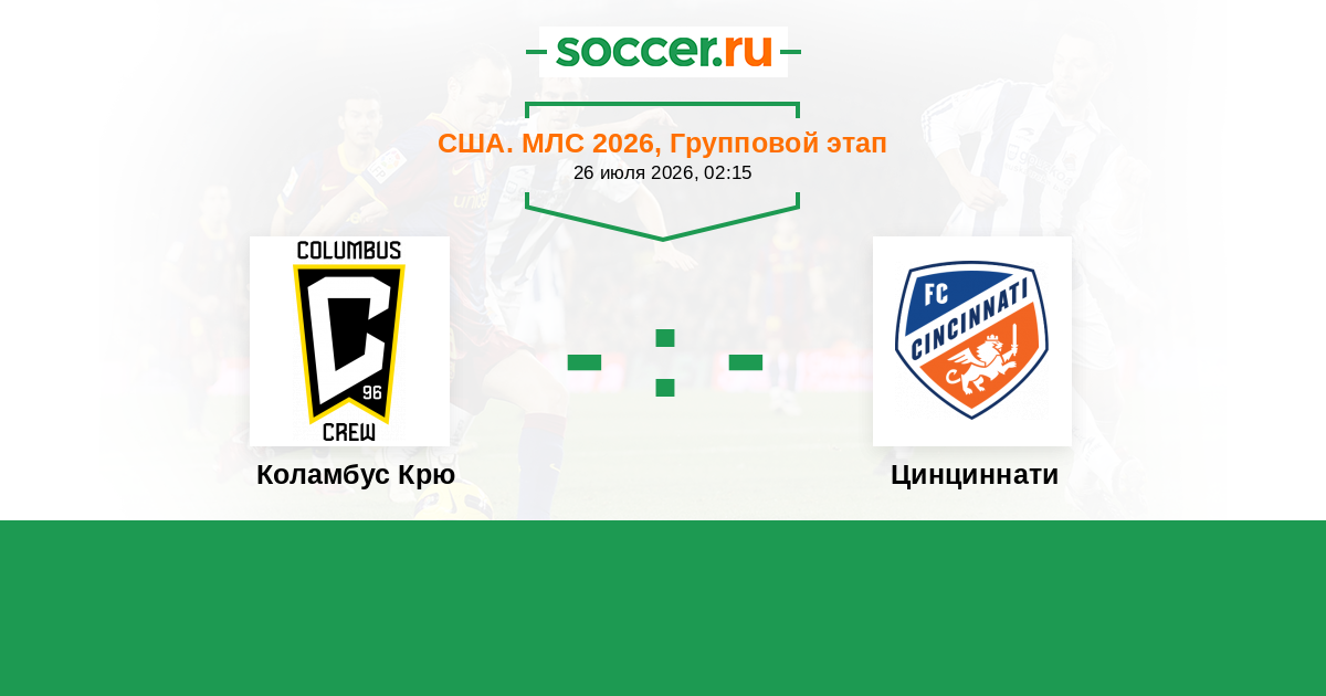 США. МЛС 13.07.2025 Цинциннати Логотип футбольный клуб Цинциннати 2:4 Логотип футбольный клуб Коламбус Крю Коламбус Крю