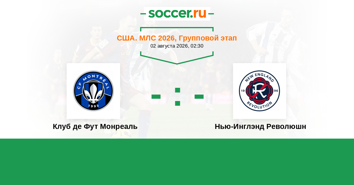 США. МЛС 26.07.2025 Нью-Инглэнд Революшн Логотип футбольный клуб Нью-Инглэнд Революшн (Фоксборо) 1:3 Логотип футбольный клуб Клуб де Фут Монреаль Клуб де Фут Монреаль