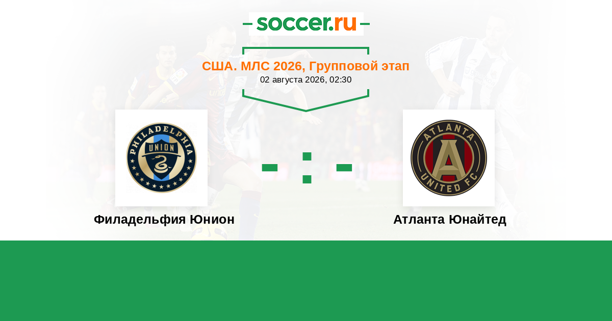История матча Филадельфия Юнион против Атланта Юнайтед