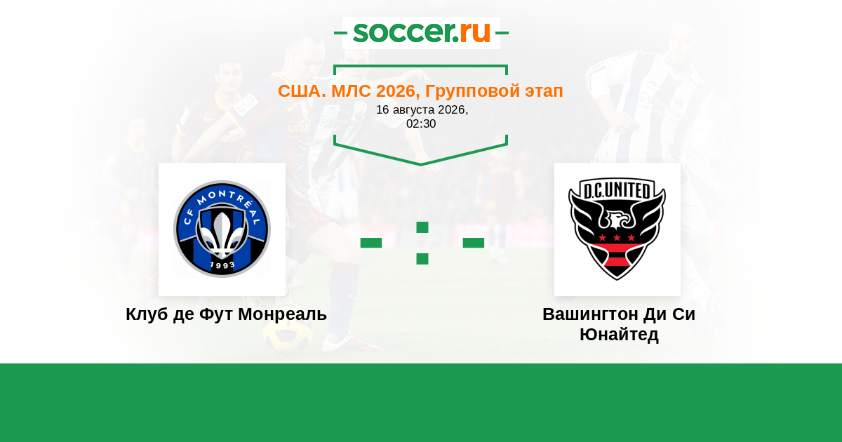 США. МЛС 01.08.2016 Вашингтон Ди Си Юнайтед Логотип футбольный клуб Вашингтон Ди Си Юнайтед 1:1 Логотип футбольный клуб Клуб де Фут Монреаль Клуб де Фут Монреаль