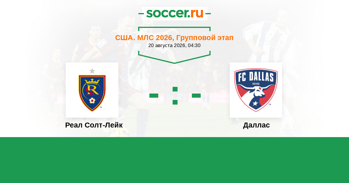 США. МЛС 28.07.2019 Даллас Логотип футбольный клуб Даллас 0:0 Логотип футбольный клуб Реал Солт-Лейк (Солт-Лейк-Сити) Реал Солт-Лейк
