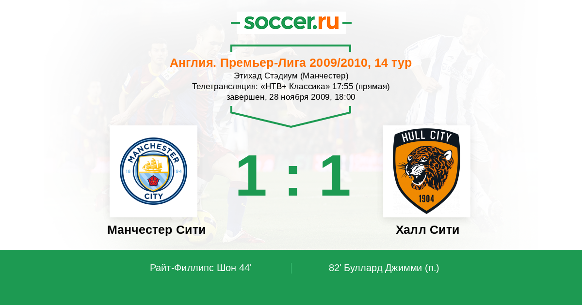 Протокол матча Манчестер Сити против Халл Сити