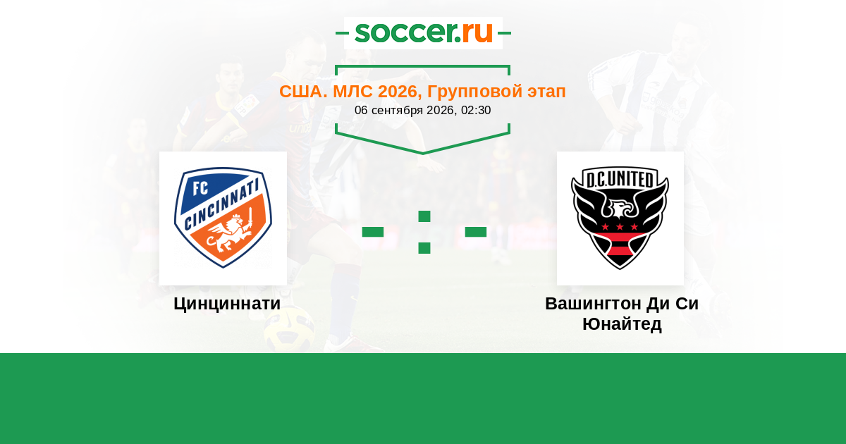 История матча Цинциннати против Вашингтон Ди Си Юнайтед
