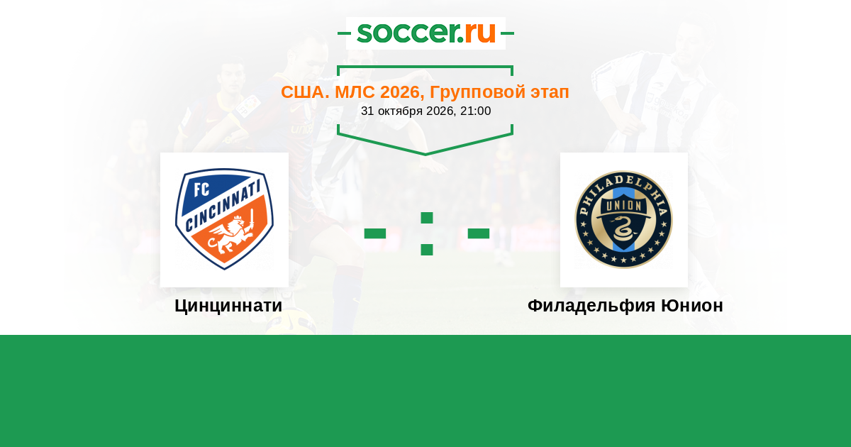 США. МЛС 09.04.2023 Цинциннати Логотип футбольный клуб Цинциннати 1:0 Логотип футбольный клуб Филадельфия Юнион Филадельфия Юнион