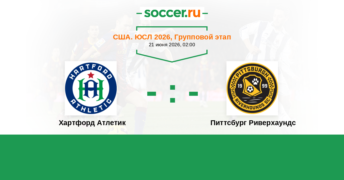 США. ЮСЛ 21.09.2025 Хартфорд Атлетик Логотип футбольный клуб Хартфорд Атлетик 1:2 Логотип футбольный клуб Питтсбург Риверхаундс Питтсбург Риверхаундс
