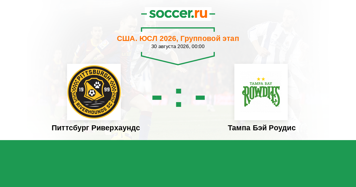 США. ЮСЛ 22.06.2025 Питтсбург Риверхаундс Логотип футбольный клуб Питтсбург Риверхаундс 2:1 Логотип футбольный клуб Тампа Бэй Роудис (Санкт-Петербург, Флорида) Тампа Бэй Роудис