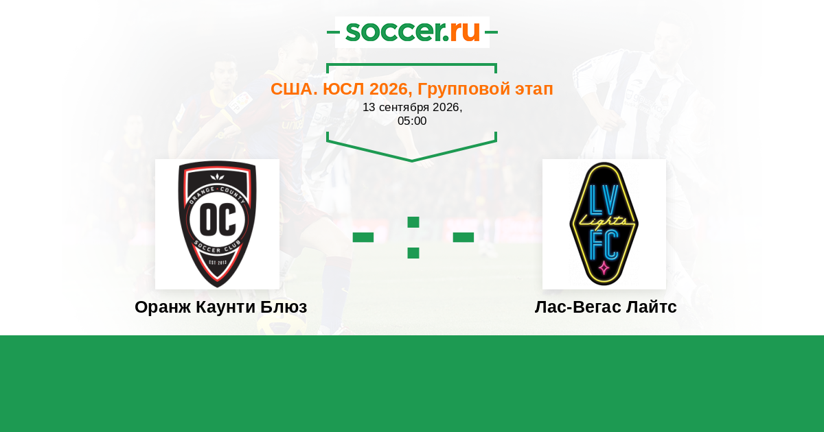 США. ЮСЛ 12.09.2021 Оранж Каунти Блюз Логотип футбольный клуб Оранж Каунти Блюз (Коста-Меса) 3:0 Логотип футбольный клуб Лас-Вегас Лайтс Лас-Вегас Лайтс