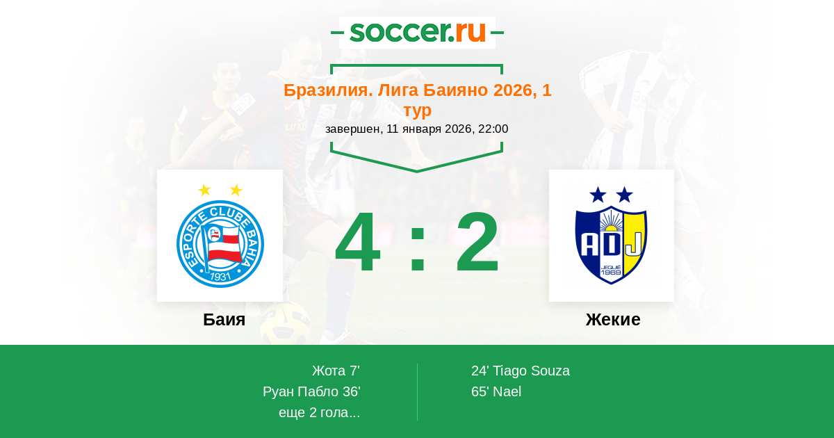 Протокол матча Баия против Жекие