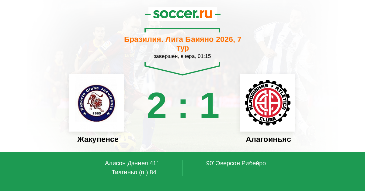 Протокол матча Жакупенсе против Алагоиньяс