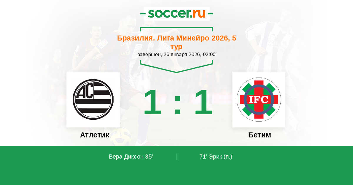 35' (1:0) Вера Диксон (7) (Луиз Фелипе (11))