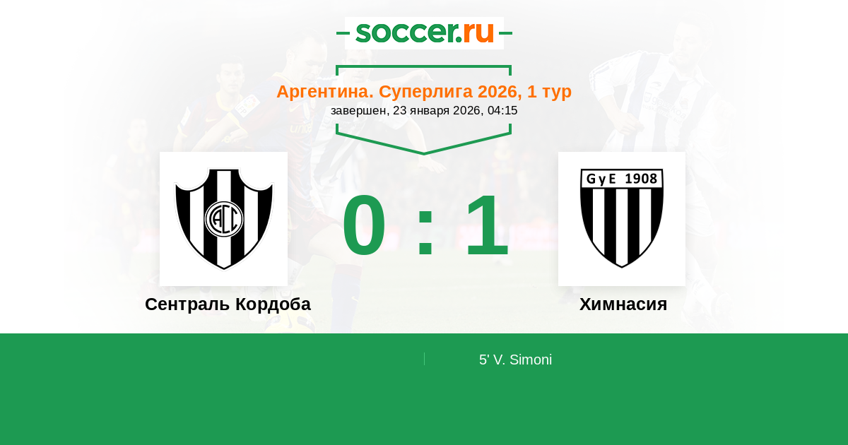 5' (0:1) V. Simoni (35) (Себальос Хулиан (19))