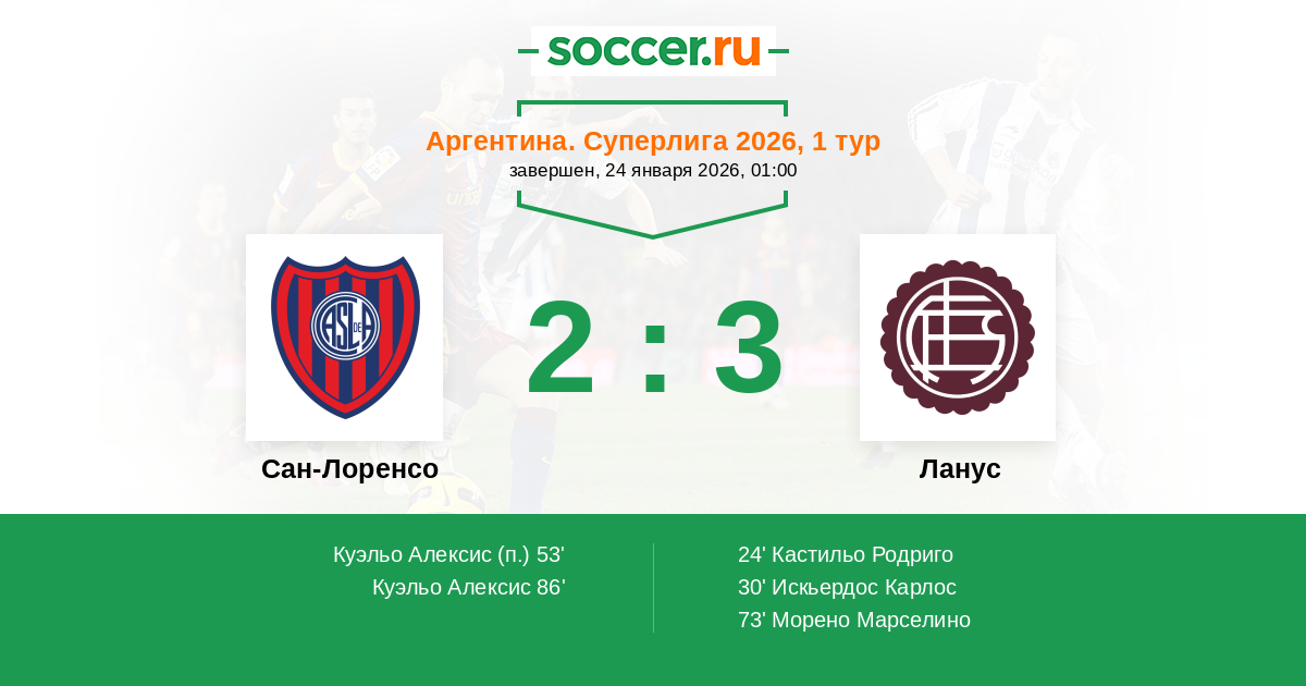 Протокол матча Сан-Лоренсо против Ланус