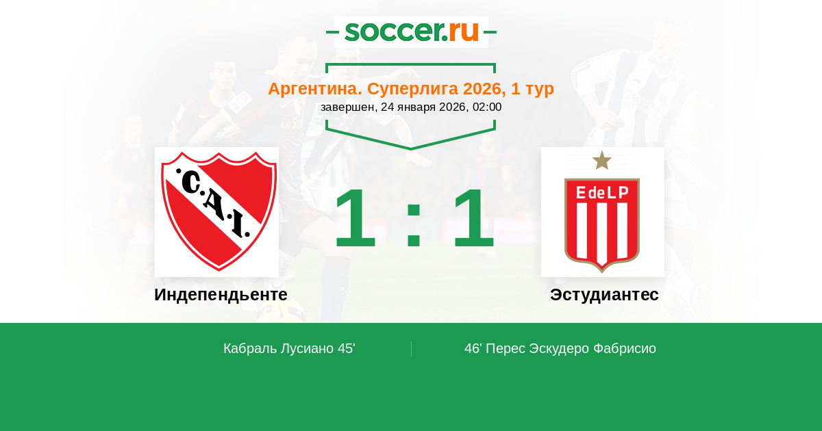 Протокол матча Индепендьенте против Эстудиантес