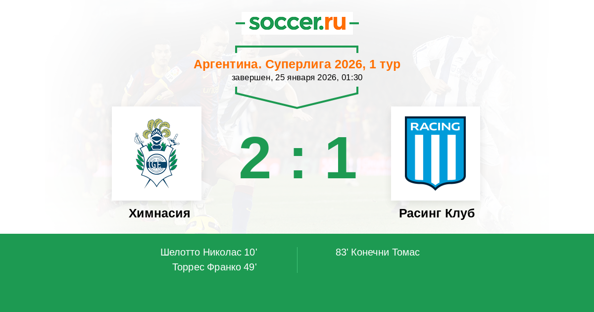 Протокол матча Химнасия против Расинг Клуб