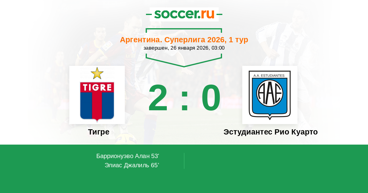 Протокол матча Тигре против Эстудиантес Рио Куарто