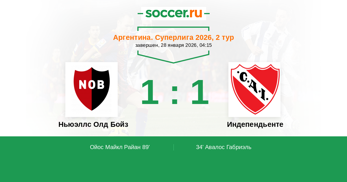 Протокол матча Ньюэллс Олд Бойз против Индепендьенте