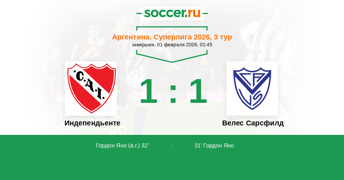 Протокол матча Индепендьенте против Велес Сарсфилд