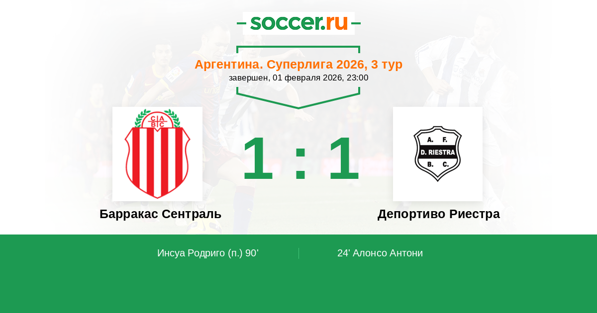 Протокол матча Барракас Сентраль против Депортиво Риестра
