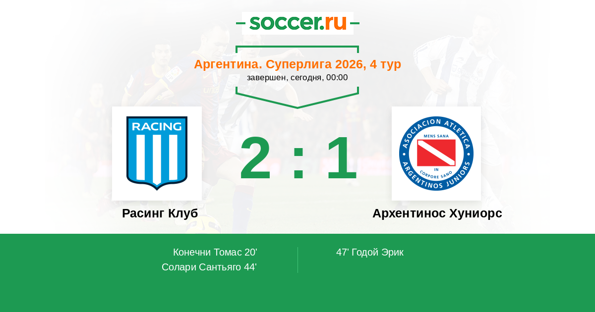 Протокол матча Расинг Клуб против Архентинос Хуниорс