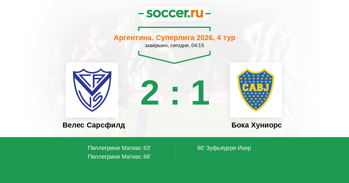 Протокол матча Велес Сарсфилд против Бока Хуниорс