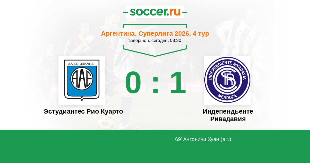 Протокол матча Эстудиантес Рио Куарто против Индепендьенте Ривадавия