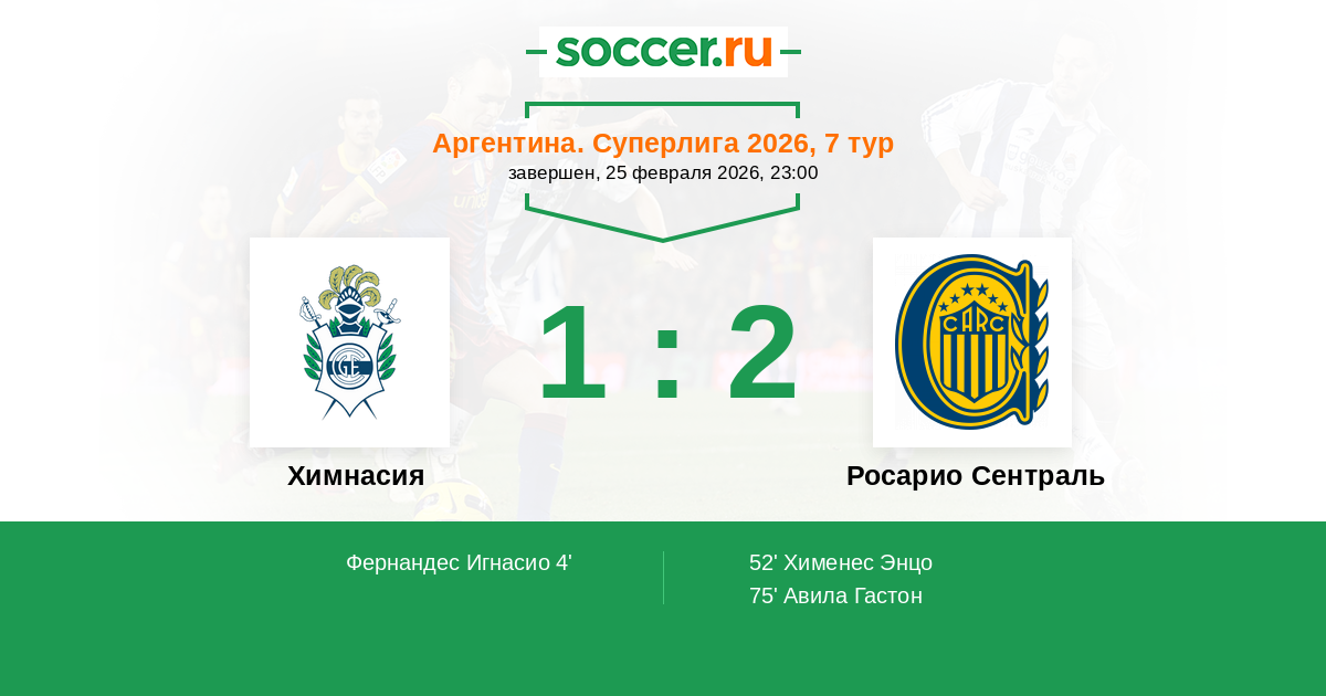 Протокол матча Химнасия против Росарио Сентраль