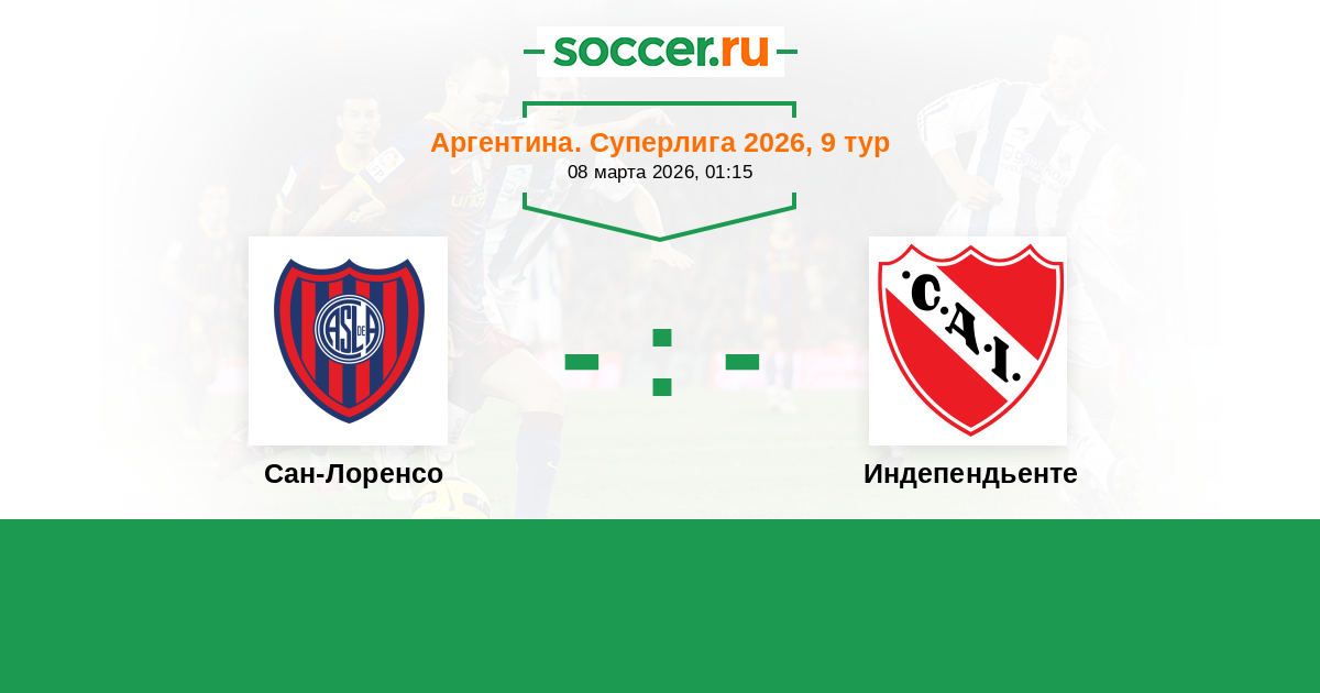 Аргентина. Суперлига 03.04.2023 Сан-Лоренсо Логотип футбольный клуб Сан-Лоренсо (Буэнос-Айрес) 0:0 Логотип футбольный клуб Индепендьенте (Авельянеда) Индепендьенте