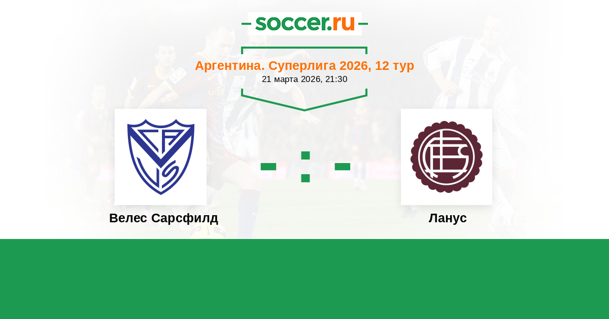 Аргентина. Суперлига 25.04.2021 Ланус Логотип футбольный клуб Ланус 1:2 Логотип футбольный клуб Велес Сарсфилд (Буэнос-Айрес) Велес Сарсфилд