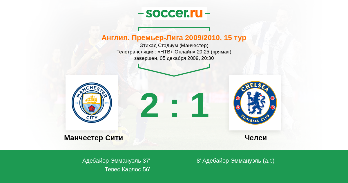 Протокол матча Манчестер Сити против Челси