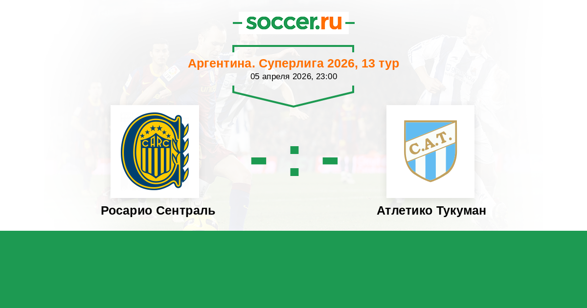 Аргентина. Суперлига 20.08.2023 Росарио Сентраль Логотип футбольный клуб Росарио Сентраль 0:0 Логотип футбольный клуб Атлетико Тукуман (Сан-Мигель-де-Тукуман) Атлетико Тукуман