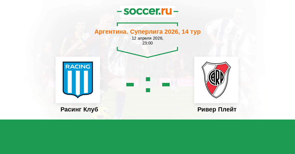 Аргентина. Суперлига 09.04.2018 Расинг Клуб Логотип футбольный клуб Расинг Клуб (Авельянеда) 0:2 Логотип футбольный клуб Ривер Плейт (Буэнос-Айрес) Ривер Плейт