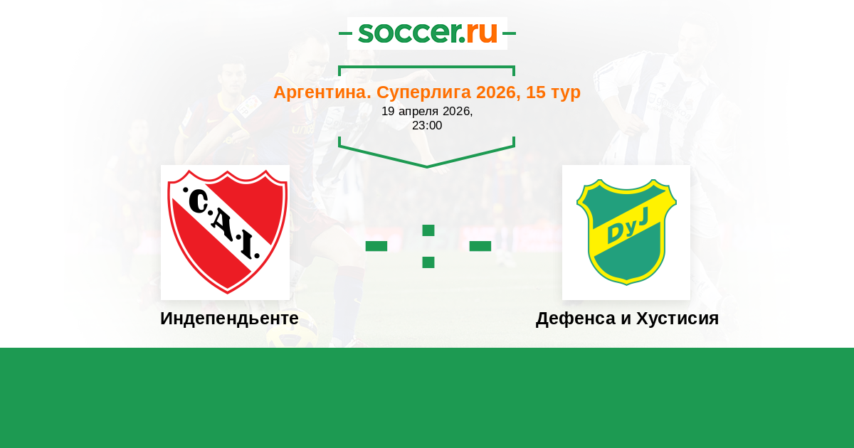 Аргентина. Суперлига 19.04.2021 Индепендьенте Логотип футбольный клуб Индепендьенте (Авельянеда) 1:0 Логотип футбольный клуб Дефенса и Хустисия (Флоренсио-Варела) Дефенса и Хустисия