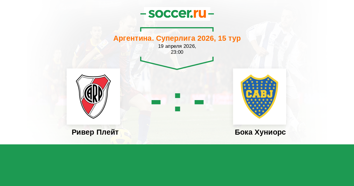 Аргентина. Суперлига 01.09.2019 Ривер Плейт Логотип футбольный клуб Ривер Плейт (Буэнос-Айрес) 0:0 Логотип футбольный клуб Бока Хуниорс (Буэнос-Айрес) Бока Хуниорс