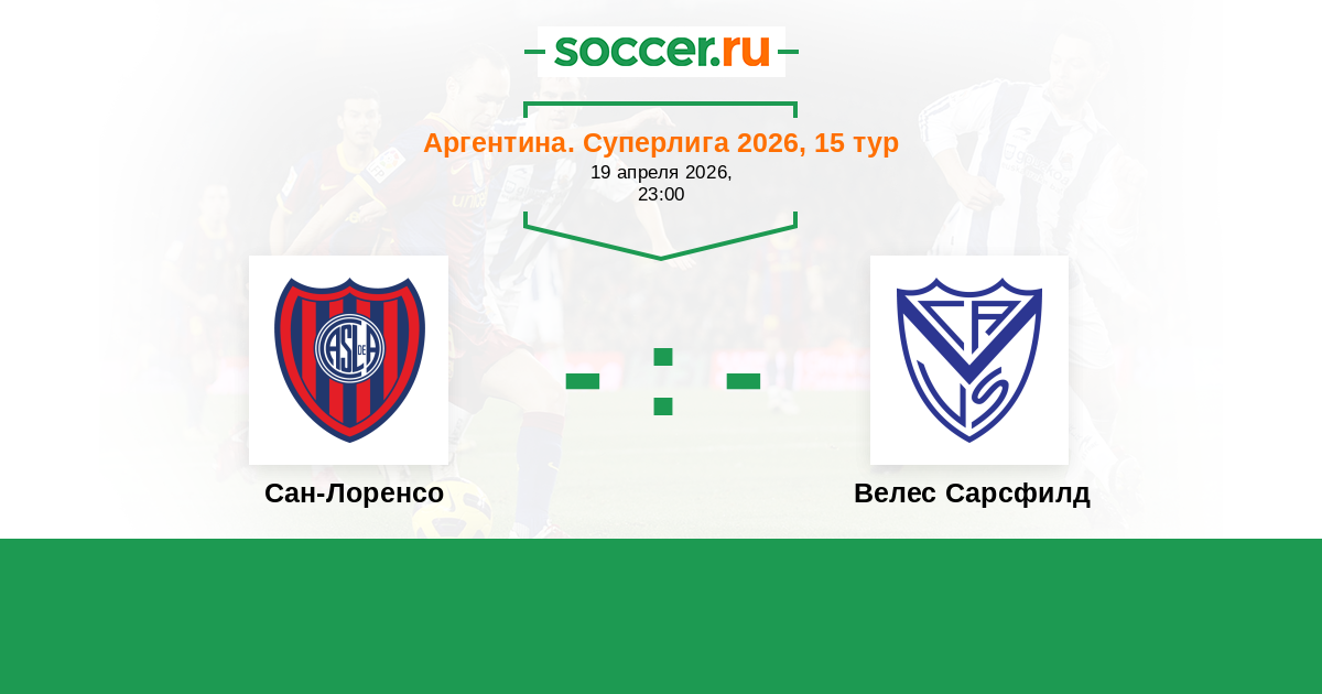 Аргентина. Суперлига 17.04.2018 Велес Сарсфилд Логотип футбольный клуб Велес Сарсфилд (Буэнос-Айрес) 2:2 Логотип футбольный клуб Сан-Лоренсо (Буэнос-Айрес) Сан-Лоренсо