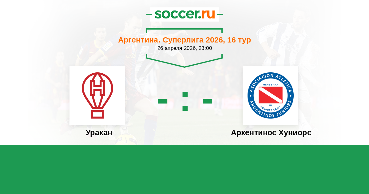 Аргентина. Суперлига 16.04.2023 Уракан Логотип футбольный клуб Уракан (Буэнос-Айрес) 0:0 Логотип футбольный клуб Архентинос Хуниорс (Буэнос-Айрес) Архентинос Хуниорс