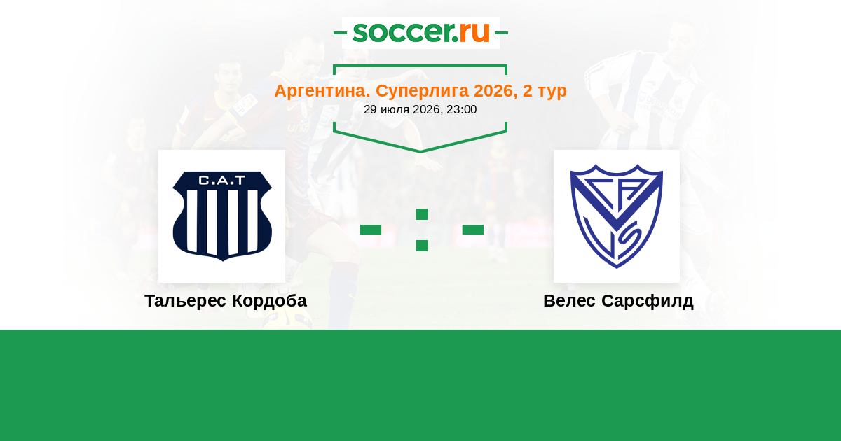 Аргентина. Суперлига 27.01.2026 Велес Сарсфилд Логотип футбольный клуб Велес Сарсфилд (Буэнос-Айрес) 2:1 Логотип футбольный клуб Тальерес Кордоба Тальерес Кордоба